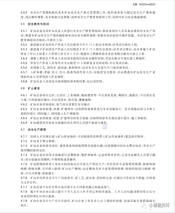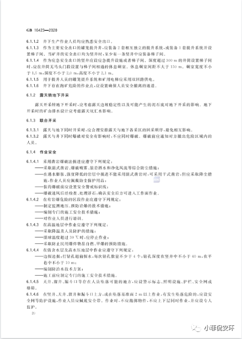 GB16423-2020《金屬非金屬礦山安全規程》,2021年9月1日起實施!