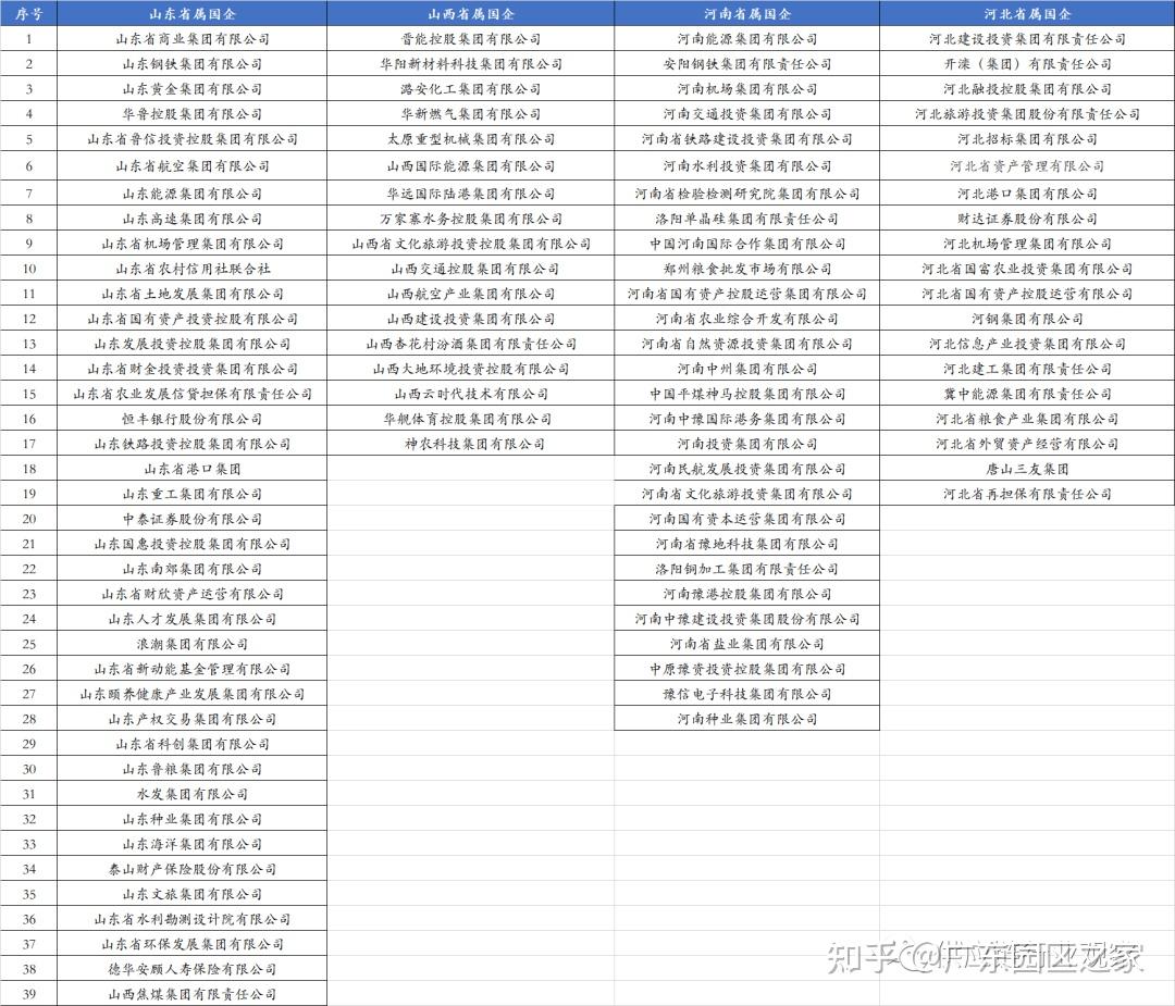 根據(jù)各地國資委披露的監(jiān)管企業(yè)名錄,山河四省共有省屬國企103家,數(shù)量上占全國比重的16%左右。其中,山東省屬國企38家、山西省屬國企18家,河南28家,19家。具體名錄如下,下表山西焦煤應為山西省屬國企: