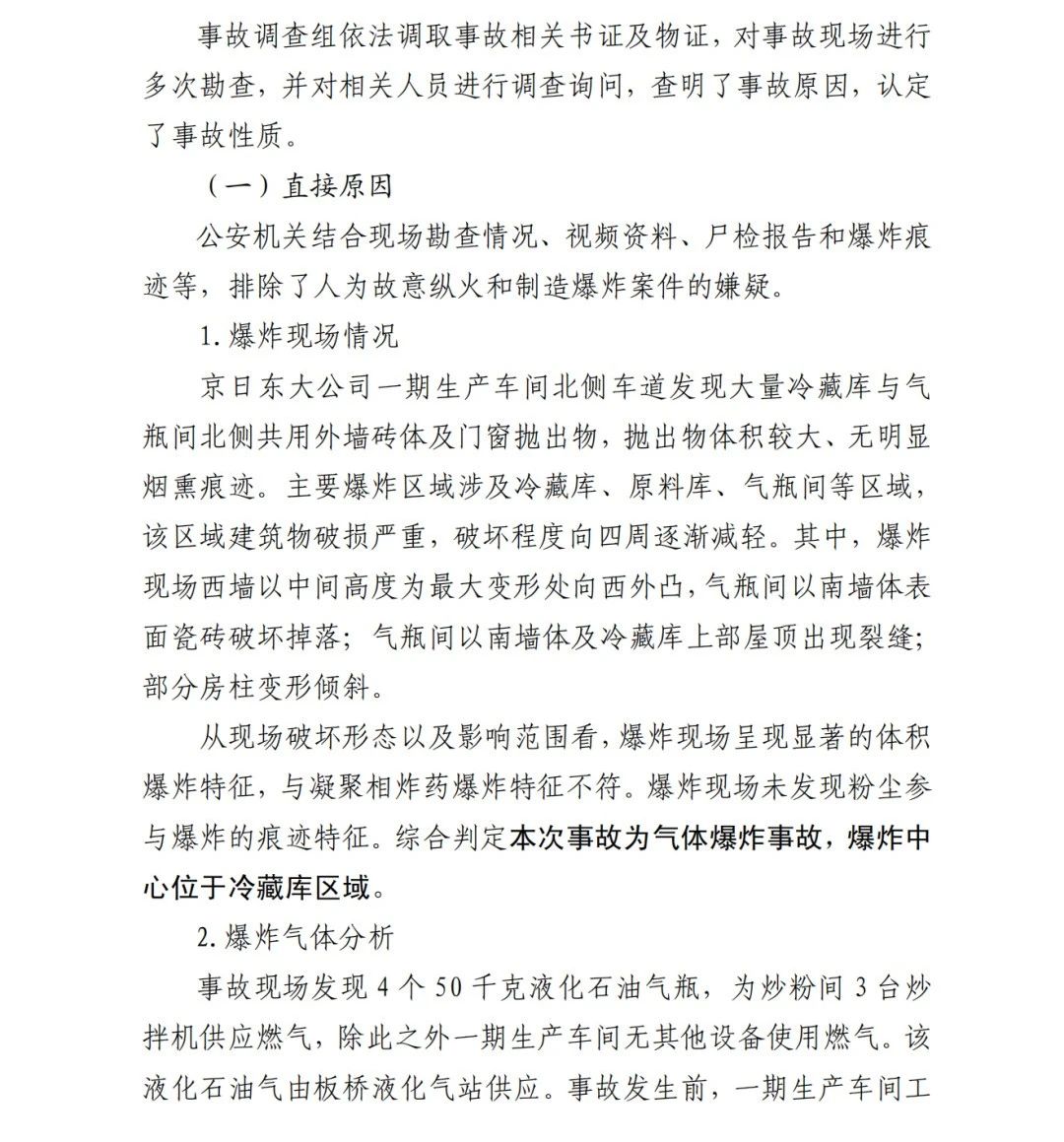 事故調查報告顯示:方勇忠2006年負責京日東大公司一期生產車間建設工作,期間未委托具有相應資質的施工單位,而組織本單位人員自行建設安裝燃氣設施,導致燃氣設施安全隱患長期存在。另外,方勇忠2018年負責一期生產車間內新建冷藏庫建設,將部分管道、閥門等燃氣設施封閉在通風不良的場所內,且未設置通風、燃氣泄漏報警等安全設施,因而對事故發生負有直接責任。