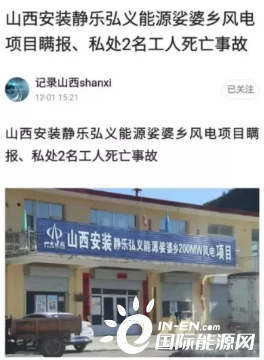 從媒體報道,山西安裝靜樂弘義能源娑婆鄉200MW風電項目,于2021年1月18日發生一起2名工人在幸村鄉標段作業途中傷亡事故。該項目部并未向上級政府部門上報,私自隱瞞處理此事。